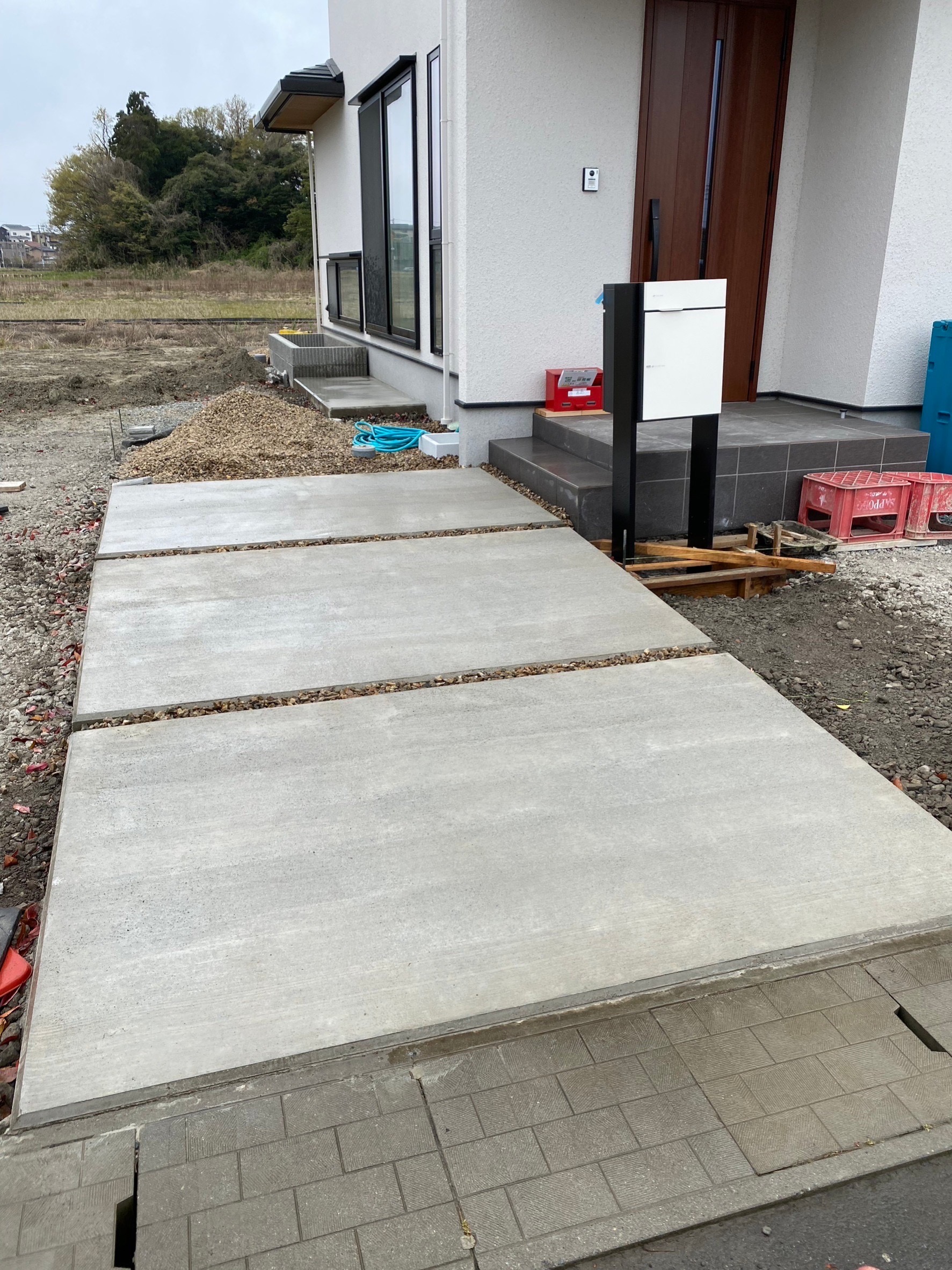 坂井市の住宅では、道路面との高低差があった駐車場の高さ調整工事を実施しました。施工前は車の出し入れ時に底面を擦る問題がありましたが、適切な勾配に調整することで、どの車種でもスムーズに駐車できるようになりました。