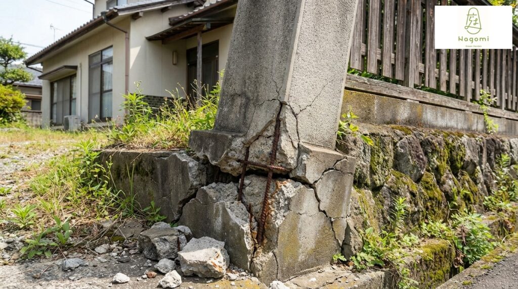 保険会社がまず着目するのは、基礎の施工品質と設置からの経過年数です。施工時のコンクリート強度不足や鉄筋の配置ミスなど、明らかな施工不良が原因の場合は補償対象となる可能性があります。