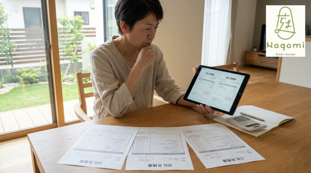 費用の安さが大きな魅力に映りますが、施工の質や実績も重視する必要があります。たとえば、経験の浅い業者や過去の施工例が少ない場合、見た目はきれいでも数年後に雑草が再発するリスクが高まることも。