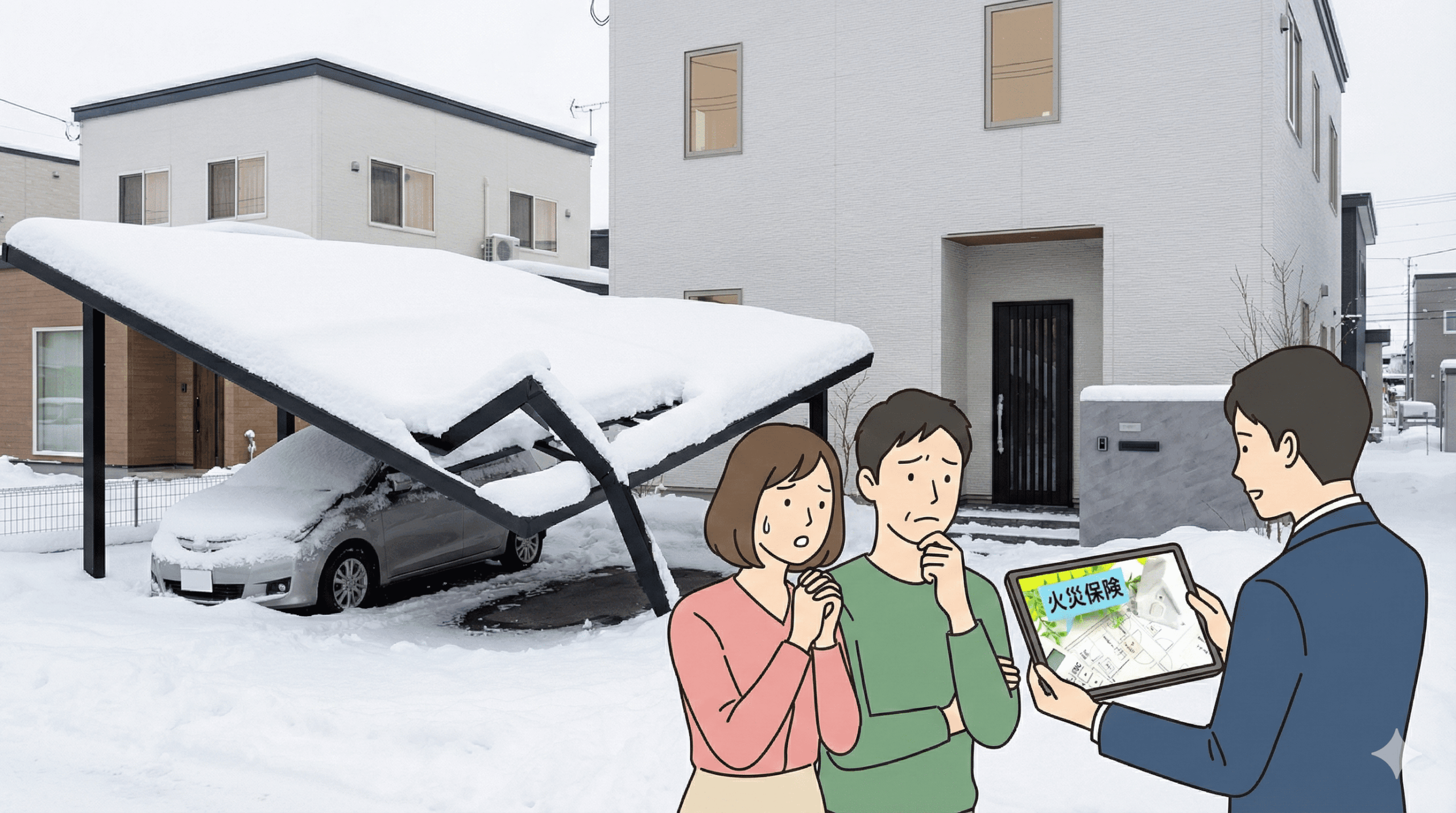 【完全解説】福井の雪害で外構が破損!火災保険で修繕費用は補償される? 公開日:2026年1月5日 コラム 福井県の豪雪シーズンになると、「カーポートの屋根が積雪で陥没してしまった」「フェンスが雪の重みで倒れた」といった外構の損傷に悩まされる方が多くいらっしゃいます。そんなとき、多くの方が「雪による破損は自己負担になるのでは? […] 続きを読む