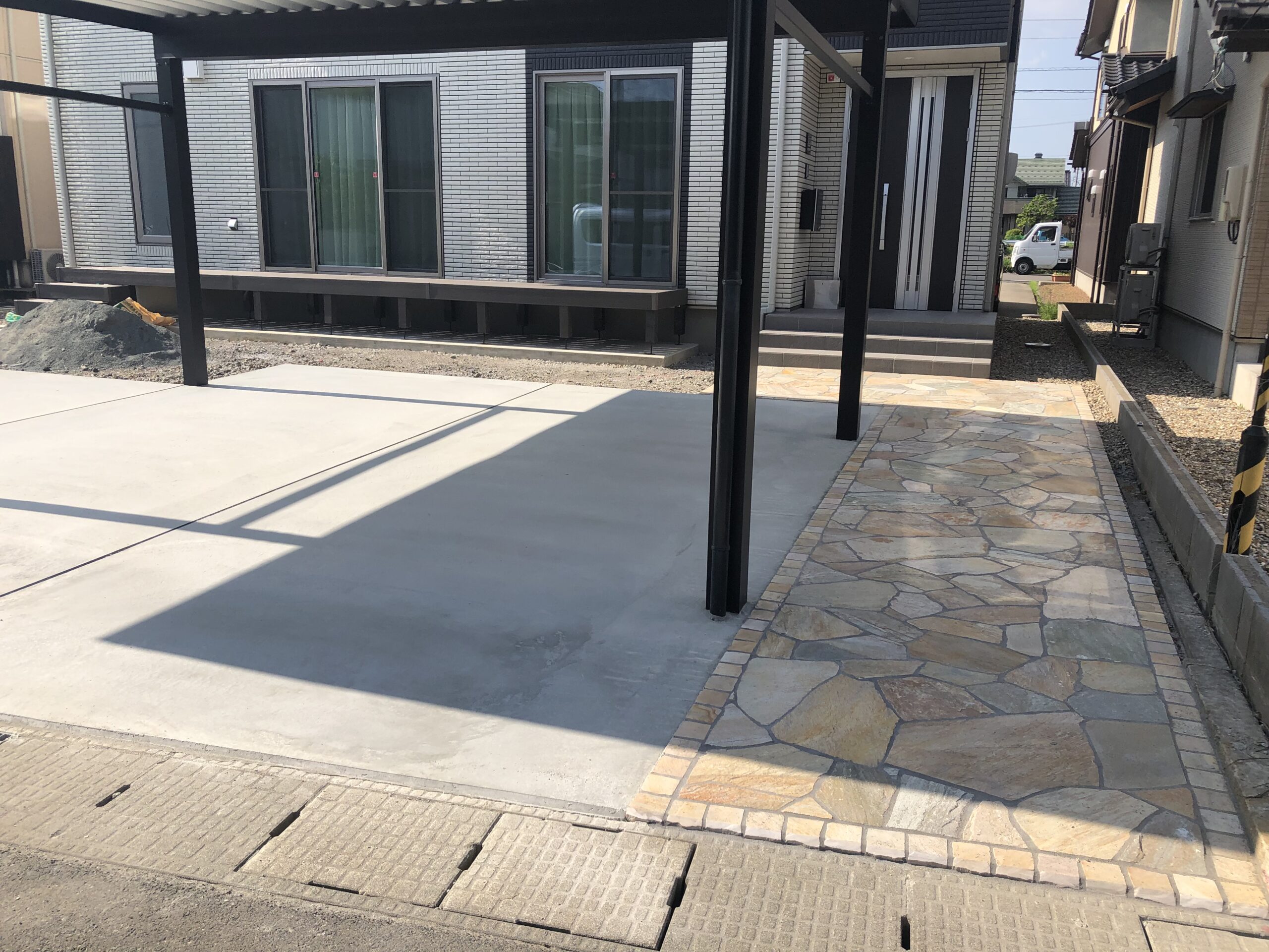 プライベート感とデザイン性を兼ね備えた外構 公開日:2025年9月27日 坂井市M様邸 玄関アプローチには、自然な風合いを活かした乱形石張りを採用。温かみのある色合いと曲線的なデザインで、訪れる人をやさしく迎えます。コンクリートとの組み合わせにより、すっきりとした印象と高い耐久性を実現しました […] 続きを読む